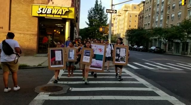 The first iteration of A-Museum happened at a demonstration in Harlem in protest of child detentions. A group of activists and artists invited migrant families and children to share stories, images, and artwork to display and share at Marcus Garvey Park.